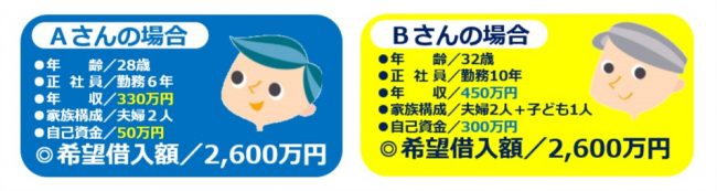 例えば、下の図のAさんとBさん、どちらもお家の購入をするために物件に足を運び、いざ「この物件を買おう!」と決まり、住宅ローンを申し込みました。