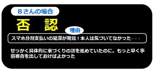 Bさんが否認された理由は<過去にスマホの分割払いで延滞があった>という事でした。